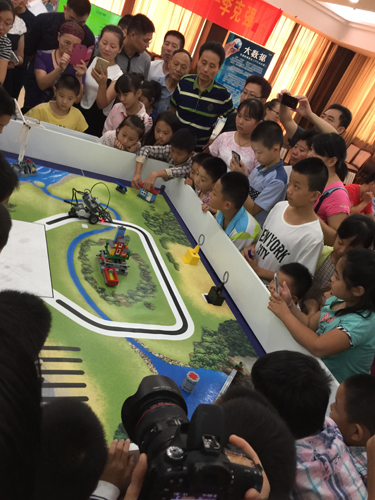 打印技术。最后,上新河中学的老师和学生们给大家带来了名为“绿色智慧城市”的机器人表演,很受大家欢迎。