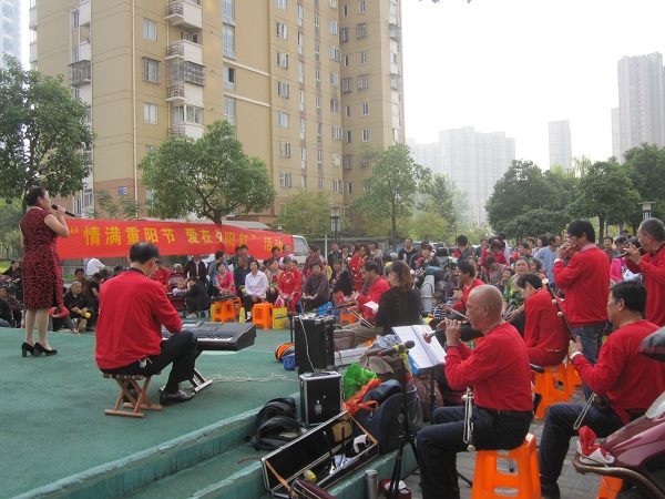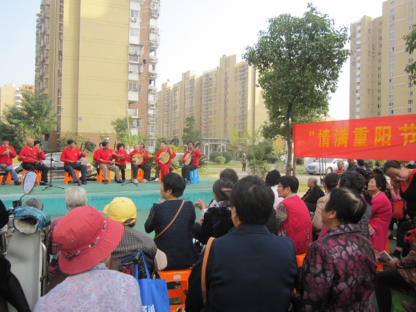 一年一度的老人节即将来临,为了营造良好的尊老、爱老氛围,丰富辖区居民的文化生活,2015年10月20日下午,莲花北苑社区在小广场开展“情满重阳节 爱在夕阳红”文艺广场活动。一群爱好文艺表演的居民团队们给大家带来丰富多彩的节目。舞蹈《开门红》拉开了此次广场活动的帷幕。民乐合奏《喜洋洋》、《紫竹调》与葫芦丝演奏《爱拼才会赢》、《阿瓦人民唱新歌》让大家领略了乐器的美妙;二人转《拔根芦柴花》,场下的观众乐呵呵欣赏;歌舞连剧《苦媳妇》,逼真的表演让大家仿佛置身其中忍不住哀其不幸,并反思现实中婆媳关系的改善;黄梅戏《十五的月亮为谁圆》、《夫妻观灯》朗朗上口,台下观众听得津津有味。此外,还有接地气女声独唱、男声独唱及男声小合唱、舞蹈穿插其中。持续一个多小时丰富的演出在观众热烈的掌声中圆满落幕。