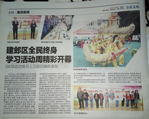 中胜社区吴融芳、刘桂珍同志获奖一事被<南京晨报>报道