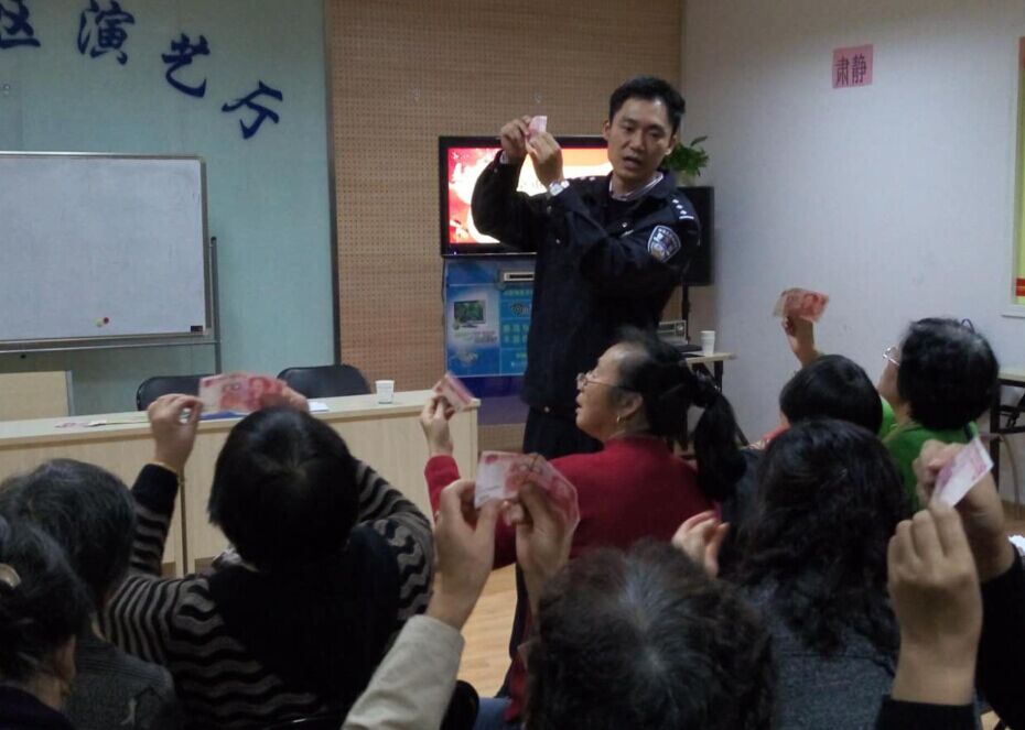 11月12日下午,沙洲派出所中城社区民警汪滢滢、杨杰警官邀请南京市公安局经侦支队韩伟警官为社区居民开展一场“反假币知识宣传”活动。活动现场,韩伟警官向居民介绍真假人民币辨别技巧,解决现场居民提出“发现假币后该怎么做”等有关问题。现场居民对南京市公安局经侦支队下社区给予充分赞扬和肯定!