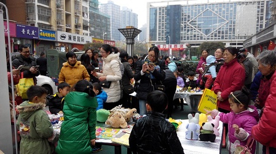 2015年12月5日下午,莲花北苑社区与莲花北苑幼儿园、龙虎网合力开展“爱上我们家小区”亲子市集活动。40余对亲子在活动现场进行图书、玩具等置换或低价买卖。小朋友们充分锻炼自己的人际交往能力,对买卖与金钱有个初步的认识,并在活动中增强亲子互动。现场8个创意手工达人也带来自己亲手做的作品,供居民观赏的同时也方便居民按需选择。免费配钥匙、免费手机贴膜、小家电检测等便民服务也深受居民欢迎。
