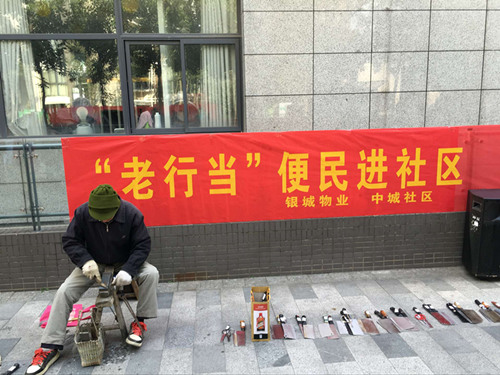 12月4日,中城社区开展“老行当”便民进社区活动。早上8点半,银城西堤国际物业管理处附近就排起了‘小长队’,附近居民纷纷从家里拿出需要修的伞和要磨的剪子、菜刀。老手艺人一边忙活,一边跟大伙拉拉家常,大爷大妈们感慨道:“社区服务真贴心”!活动现场,社区积极宣传“垃圾分类”知识,提高居民环保意识,并现场发放‘绿色’垃圾袋。便民活动得到大家一致赞扬,社区今后还将不断开展此类活动,为大家提供方便。