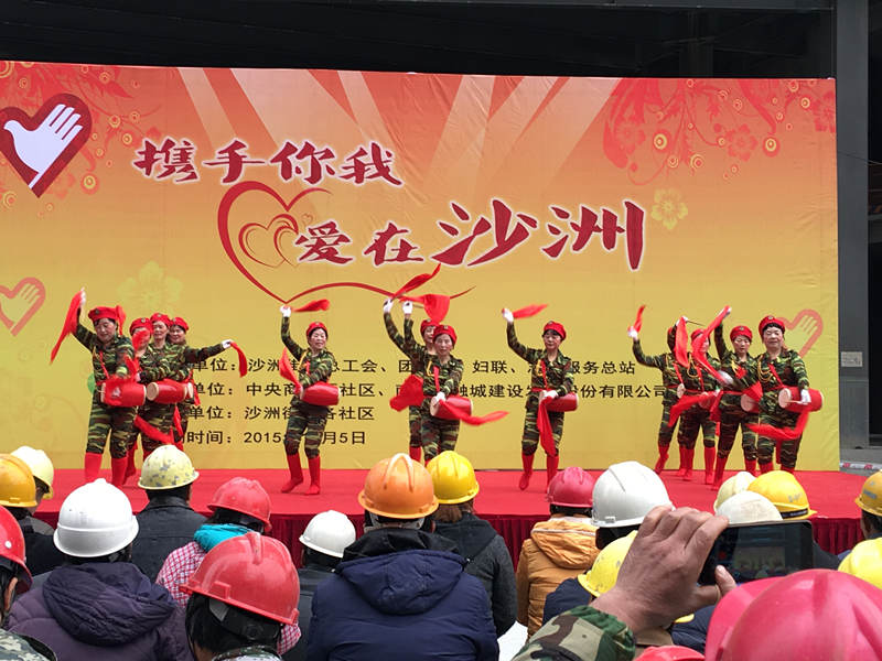 12月5日,中城社区参加沙洲街道组织的“携手你我,爱在沙洲”给民工兄弟送温暖活动。寒风中,中城社区团队志愿者阿姨们穿上了演出服,为民工兄弟们在冬日带来了温暖。现场活动还有免费理发、义诊以及衣物捐赠等,让民工兄弟在看到精彩表演的同时也感受到关怀和温暖。