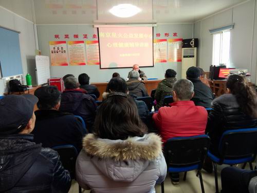 2015年12月18日上午,仁河社区请来南京星米公益发展中心阿尔泰教授,为社区内失独家庭及部分癌症患者上了一堂心里健康辅导讲座,阿尔泰教授是社会科学研究院研究员,善长做心理辅导工作。目前失独家庭及癌症患者大多存在心里阴影,特别是失独家庭,他们生活在自己的世界中,不愿与别人接触,害怕看到别的孩子引发自己的伤心事,造成了不良的心理健康问题。而癌症患者往往当得知自己患上了癌症会背负严重的思想包袱,产生消极情绪。阿尔泰教授针对他们不同的心里问题进行心里辅导,有助于他们早日摆脱心里问题,融入社会大家庭中来,开始全新的生活。这次心里辅导课受到这类人群的欢迎,对改善社会问题起到了一定的帮助。