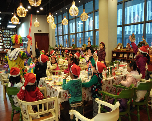 在圣诞树、汽球、彩带和礼物的点缀下,整个活动现场都洋溢着圣诞的欢乐气氛。桌上放满了孩子们爱吃的小零食。并精心准备圣诞礼物,交予工作人员进行包装,由工作人员装扮成圣诞老人,发放给孩子们。活动分为三个环节,第一个环节是由邀请的外籍老师,带领孩子们唱圣诞歌,随着大家的歌声、音乐声,活动正式拉开帷幕。紧接着第二个环节,小丑带着气球,神秘登场,孩子们都兴奋的站了起来,小丑的魔术表演将活动推向了高潮。五彩假面、气球变变变等有趣的游戏环节、让孩子们一个个都眉开眼笑,到处充满了欢声笑语。最后一个环节也是孩子们最期待的,圣诞老人出现了,孩子们都争先恐后挥着小手,迫不及待的要圣诞礼物。发完礼物活动也到了尾声,孩子们依依不舍的和圣诞老人说再见,并且彼此送上了祝福。