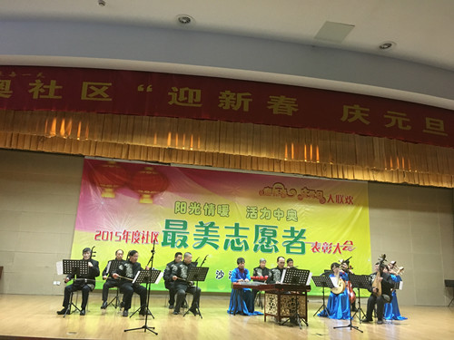 12月26日下午,中奥社区在南外河西分校小礼堂隆重举行了2015年度“最美志愿者”表彰大会暨“迎新年,庆元旦”联欢会,党员、居民欢聚一堂,共迎新年的到来。