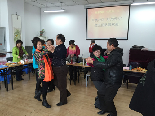 为丰富社区居民群众的文体生活,加强社区文艺团队的交流和沟通,1月15日上午,中奥社区在社区二楼活动室举行了“阳光活力”文艺团队联欢会。社区文艺团队负责人代表社区向一直以来热心参与社区文化活动的队员们表示衷心的感谢,今年社区开展的各项文艺活动和阳光活力舞蹈队、民乐队、腰鼓队等各支队伍奋发向上、锐意进取,在省市区各级平台都取得了让人值得骄傲的成绩。大联欢现场,队员们载歌载舞,有小合唱的、唱戏曲的、葫芦丝演奏的,大家其乐融融。