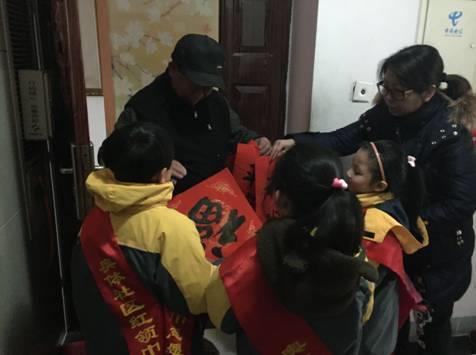 1月28日下午,奥体社区组织红领巾志愿者到辖区内给高龄、独居老人送春联。孩子们不仅给老人们送去了新春的祝福,还给老人们送去了欢乐,现场一片欢声笑语。
