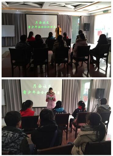 在放假期间,孩子们的假期安全成为家长们最为关心的问题,为了减少和防止假期安全事故的发生, 2016年2月18日上午,月安社区组织辖区内青少年在二楼会议室开展青少年安全知识讲座活动。讲座以居家安全、交通安全、饮食卫生等方面为内容,通过青少年分段朗读安全知识手册的方式共同提高他们的安全知识。通过此次讲座,希望孩子们掌握安全知识的同时有个平安快乐的假期。