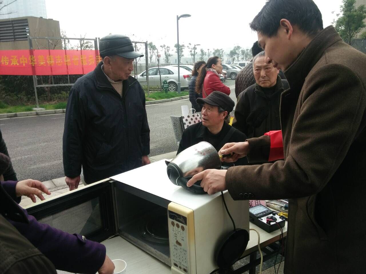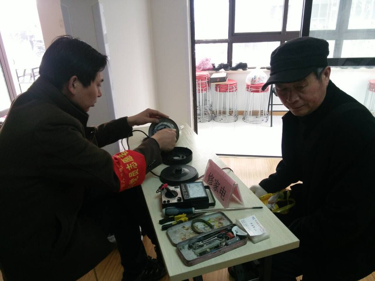 本次便民志愿服务内容包括:免费修伞、电器维修、健康咨询、计生宣传、义务理发、修理自行车、义诊、磨刀、法制宣传等活动。同时,社区志愿服务站工作人员还现场招募志愿者。原定9点半开始的活动,居民们早早就在各自的服务项目台前自动排起了长队,有手提小家电的、手提皮鞋的、还有领着学前儿童前来咨询的,络绎不绝的人群把服务台前围得满满当当。