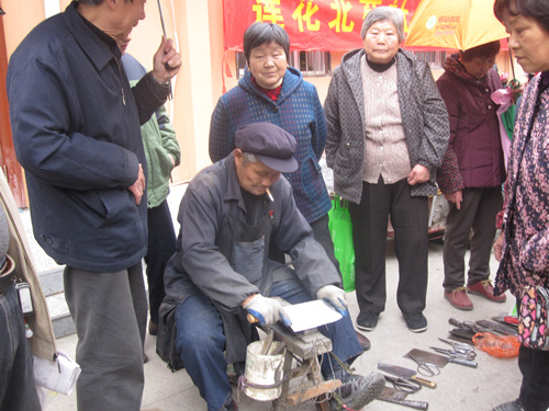 “磨剪子嘞戗菜刀……”随着这一声熟悉的吆喝声,莲花北苑社区“学雷锋活动日”正式拉开帷幕。