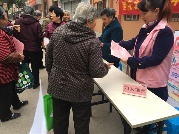 2016年3月4日上午,莲花北苑社区巾帼志愿服务者在开展“学雷锋活动日”广场活动中充分发挥巾帼力量,向居民群众进行《面对暴力该怎么办》展板展示、发放《反家暴资料》宣传页等,努力消除不和谐因素,预防家庭暴力,共建平安家庭。