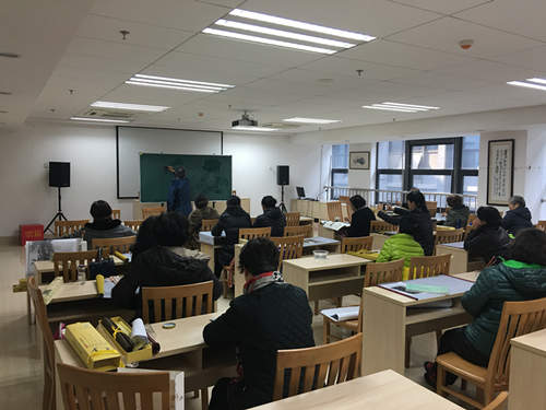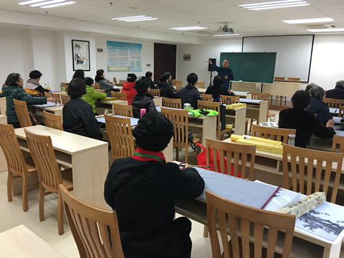 自书法社开班以来受到了居民的广泛好评,3月11日上午9点在街道社区教育中心501教室开始了春季班的第一堂课。课上除了一些老学员也来了许多新的学员。上课人数多达30多人,李老师非常耐心的教新的学员们怎么握笔,也给新老学员讲了书法方面的知识,坐在下面的学员们听的都很认真。在书法课快结束的时候李老师和大家讨论一下组织外出游玩的建议,表示每次都是在教室内学习太枯燥,可以组织大家一起走出去,让书法社的教学变的不再枯燥。新来的刘阿姨表示也是听小区其他的街坊领居知道这个兴趣班的,平时也比较喜爱书法就是没有地方可以交流学习,现在有了社区组织的这个平台,以后就有学习的地方了,李老师教的非常好,同时也感谢社区提供这个平台给我们。(中胜社区居民学校)