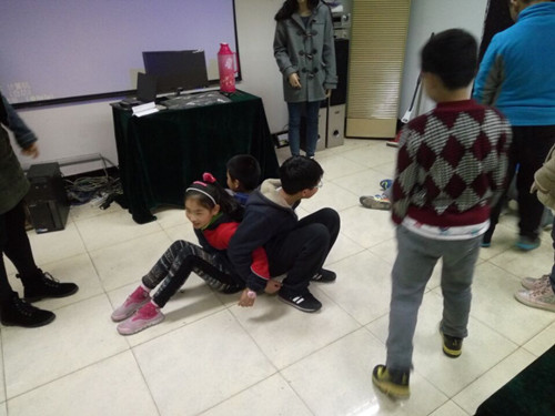 最后,是“齐心协力坐地起”的游戏,这十分考验大家的团队合作能力,令人意外的是,孩子们完成的十分顺利,男生和女生都团结在了一起,做得又快又好。
