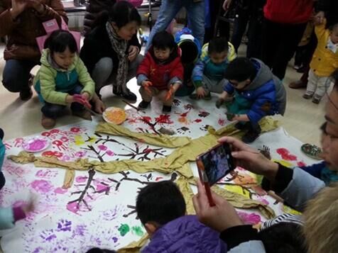 2016年4月7日下午,香山路社区联合香山路幼儿园共同开展“大手牵小手 亲近大自然”活动。活动现场,幼儿园的孩子们动起自己的小手在大白纸上画上健康、高大、茂盛的大树,孩子们玩得不亦乐乎、开心极了。社区的老人们和幼儿园的孩子们一起手拉着手,在画好的大树周围做游戏、唱歌、跳舞共同度过快乐的时光。