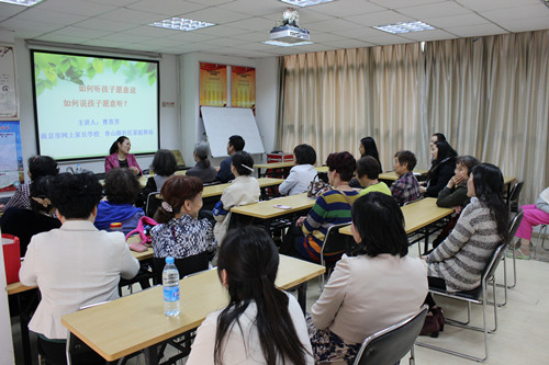 2015年4月18日上午,香山路社区联合南京市妇联家庭驿站,特别邀请中学高级教师、江苏省心理教育研究先进个人、玄武区优秀教育工作者、国家婚姻家庭咨询师曹苏芳老师为辖区家长带来一场家庭教育讲座,讲座主题为《如何与孩子沟通》——如何听孩子愿意说,如何说孩子愿意听。曹老师生动、活动的讲授形式受到了在座的家长的一致好评。(香山路社区居民学校)