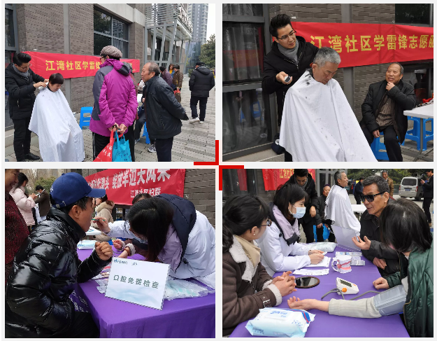 为了弘扬中华民族的传统美德,进一步传承雷锋精神,充分发挥志愿服务作用,3月3日上午9点半,江湾社区联合建邺区市场监督管理局、盈科律师事务所、双闸街道食安办,在江湾城一期会所南门广场开展了学雷锋志愿服务活动。活动现场为居民朋友们提供了法律援助,民政、就业、食品安全等政策咨询,磨刀、理发、推拿、义诊等便民服务,得到了广大居民朋友们的肯定和赞许。通过此次活动,弘扬雷锋精神,传递正能量,践行社会主义核心价值观,推进志愿者服务制度化,学雷锋活动常态化,形成向善力量,构建文明、美丽、幸福的江湾社区。