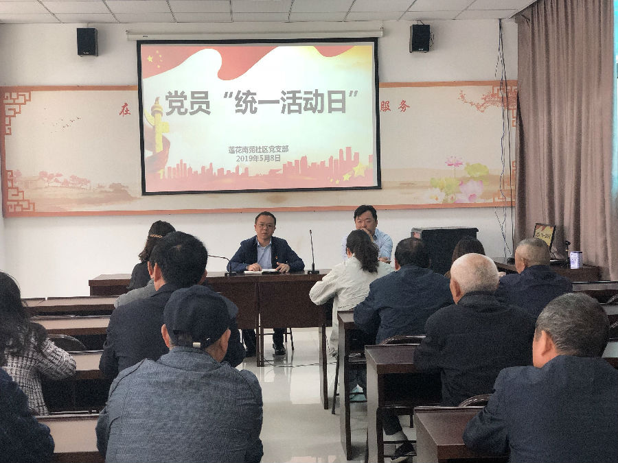2019年5月8日上午,莲花南苑社区党支部组织社区内党员约30人,开展党员固定学习日活动。