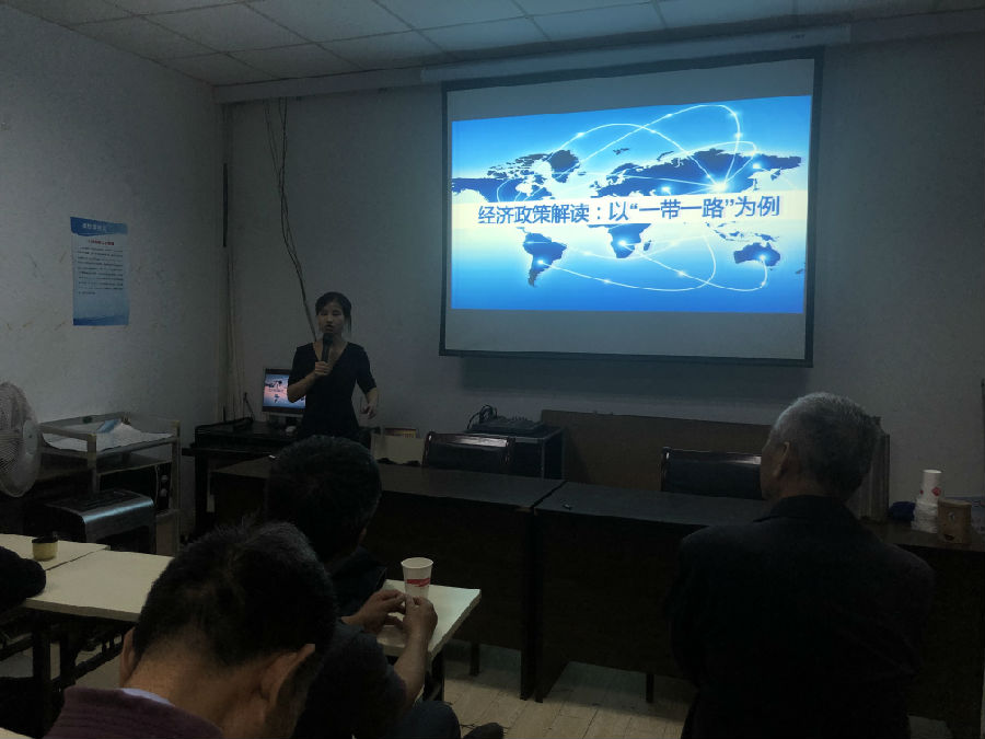 5月15日下午,莫愁湖社区党委邀请南京大学法学博士、南京市委党校政法教研部讲师苏瑞娜老师为辖区党员上了一堂精彩的党课。课程以《“一带一路”国家倡议与地方机遇》为主题,苏老师由浅入深,通过大量的事例讲解了国家层面的经济现状,以及中美贸易战的相关解析。