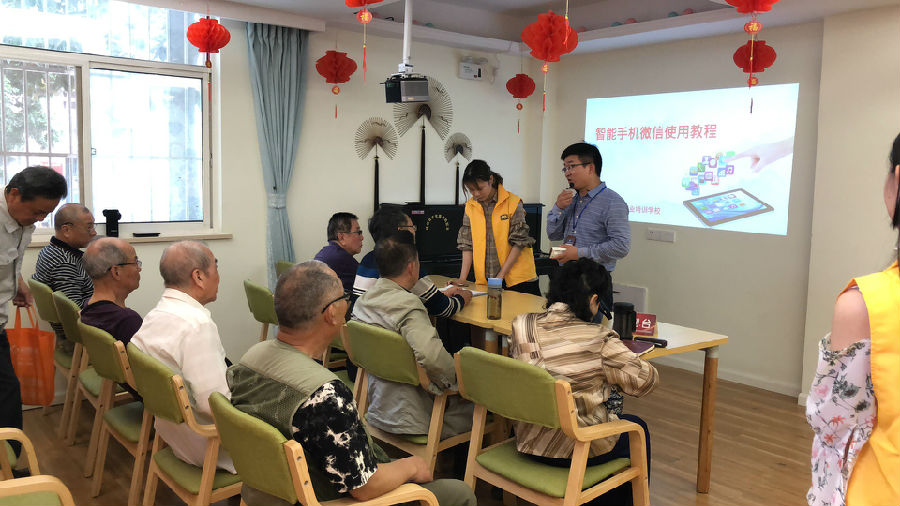 5月17日下午,茶亭社区老年大学在悦华茶亭为老服务中心开展智能手机使用教学活动。此次教学课程为“怎样使用微信”,包括微信注册、实名认证、具体使用等内容。