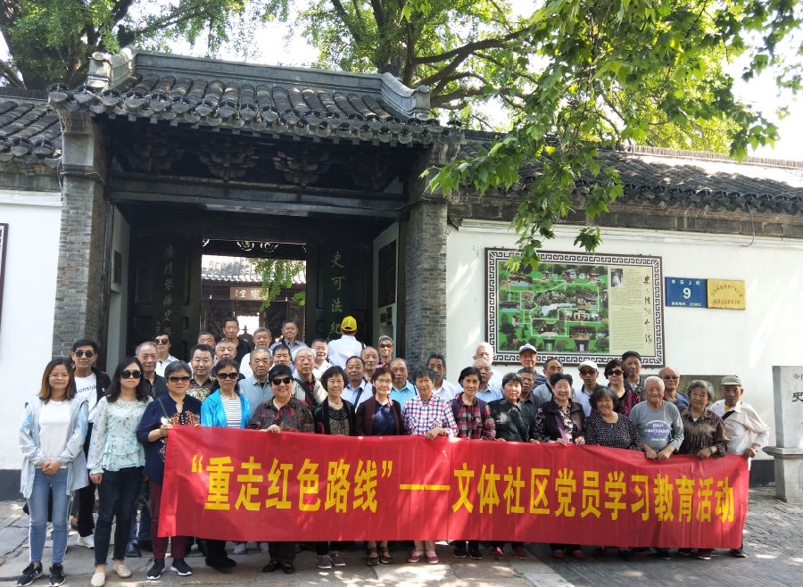 2019年5月24日,文体社区党委组织社区党员开展“重走红色路线”为主题的党员学习教育活动,此次活动共有44名党员参加,前往扬州史可法纪念馆参观学习,缅怀祭奠历史英雄,追忆先烈爱国精神。史可法纪念馆始建于清代乾隆年间,同治九年重建,1956年被列为江苏省文物保护单位,是纪念明朝末年抗清民族英雄史可法的著名历史遗迹,现为国家三级博物馆、江苏省爱国主义教育基地。
