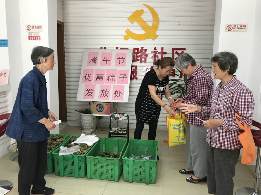 北圩路社区今年为居民准备了2000个白粽子,以每份十个白粽子以十元的优惠价格提供给本社区居民,因数量有限所以每户限购一份,此项活动很受居民朋友们的欢迎,大家都纷纷前来购买,同时也真切感受到了祥和的节日气氛和浓浓的端午情,活动也体现了邻里间互帮互助、互相爱护的传统美德。
