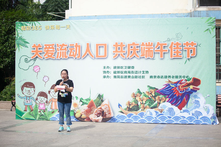 本次活动由建邺区卫计局、人口计生协主办、南苑街道计生协协办,南苑街道黄山路社区、南京市迅捷养老服务中心承办,现场对5户流动人口困难家庭与5户居民困难家庭进行慰问。由黄山路社区文体队、居民献上了5个精彩的节目,更由迅捷养老服务中心为主开展了庆端午包粽子比赛,比赛激烈,居民们热情参与,现场评出了一、二、三等奖,从各个层面上丰富了流动人口的精神文化生活。