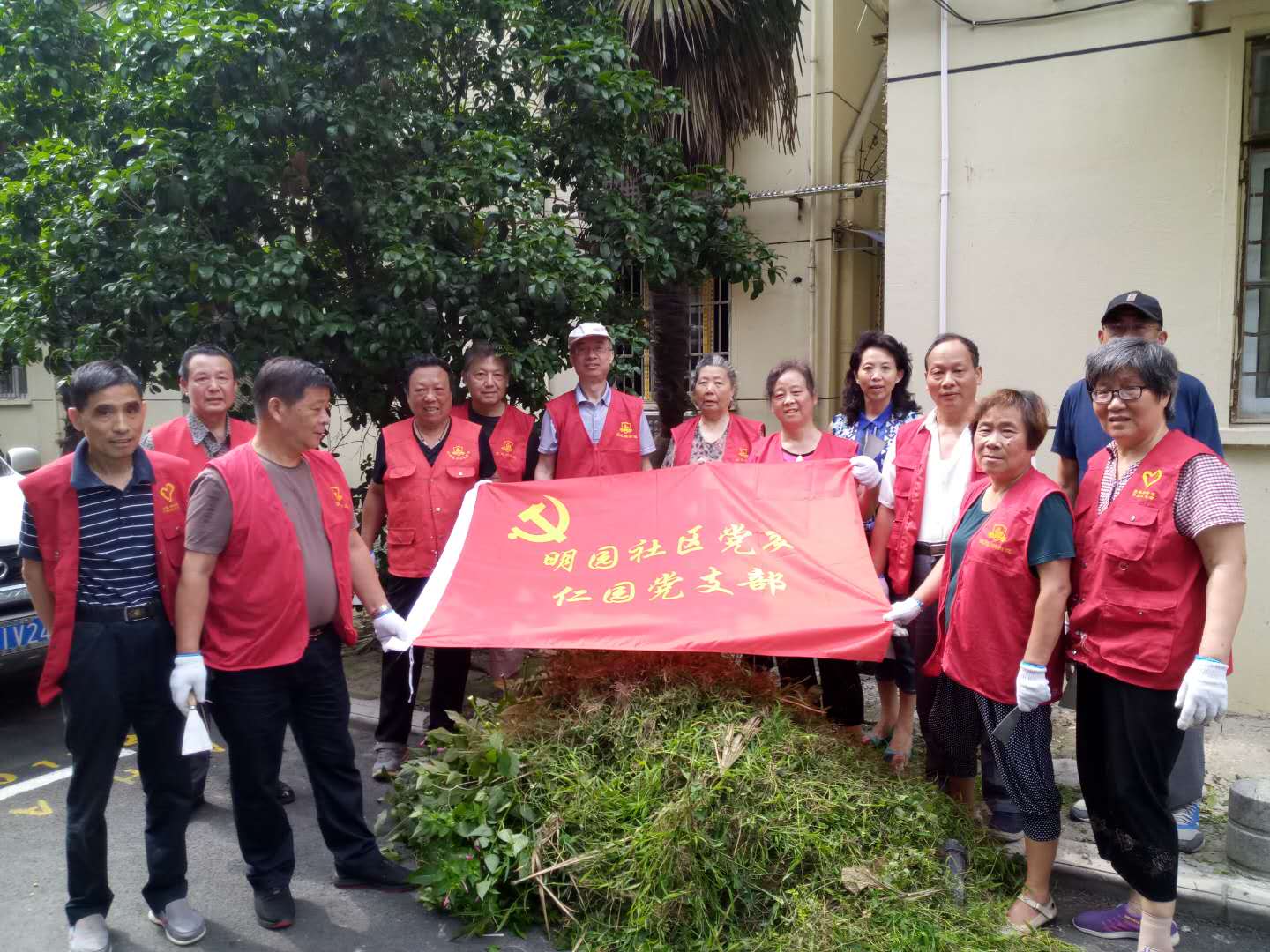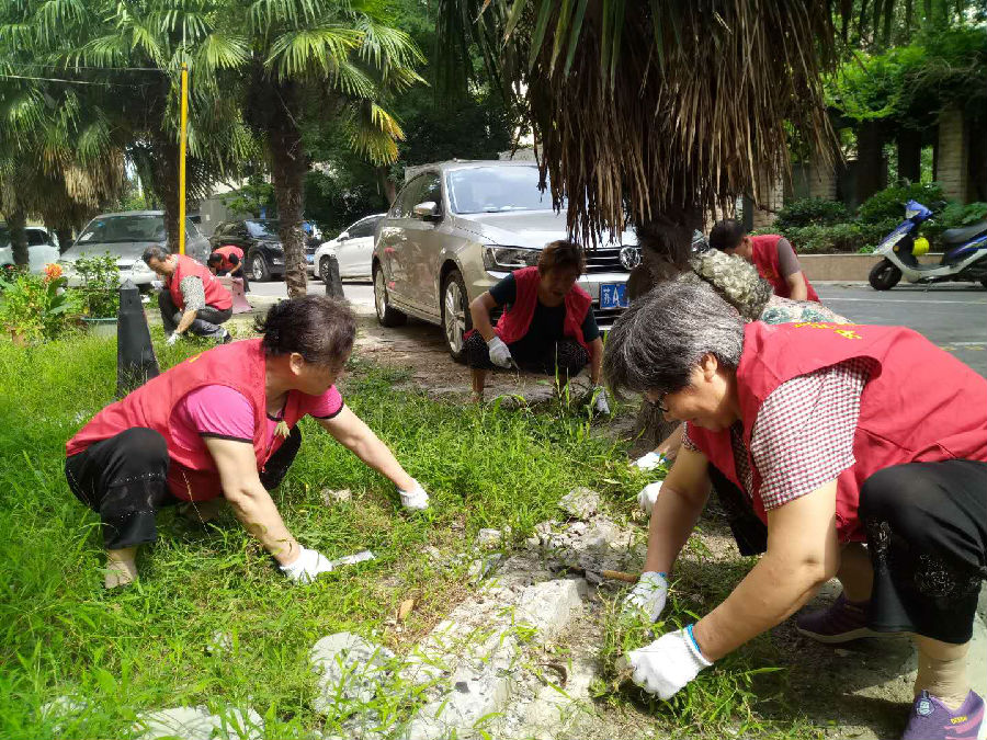 6月26日社区组织党员进行除草活动,前一段时间,雨水较多,致使小区绿化带内杂草疯长,影响了小区环境卫生。党员志愿者们自备扫帚,铁钳,手套等工具 ,在小区的花坛边开展清理保洁行动,他们分工协作,个个干得热火朝天,一丝不苟,有的修剪树枝,有的清理枯枝落叶,互相合作。进过一个多小时的义务劳动,除过草之后的绿地显得更加整洁,漂亮,有序,从旁经过的居民 无不竖起大指。