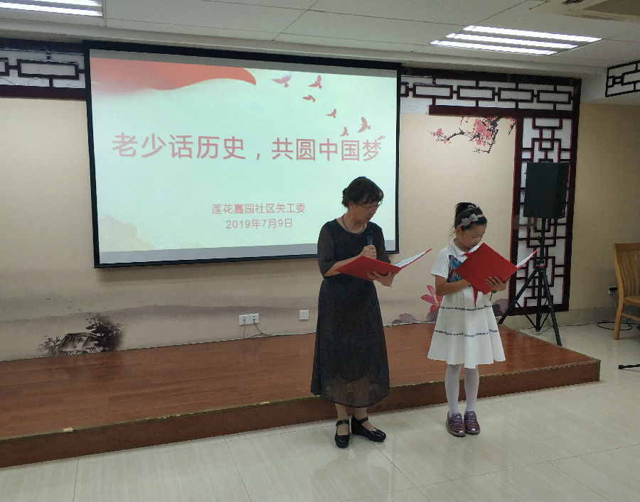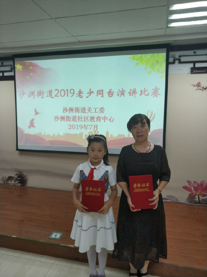 为进一步加强青少年思想道德教育,弘扬爱国主义精神,争做新时代四有新人,7月9日下午,莲花嘉园社区关工委“五老”孙跃与参加社区主导的“弹性离校”制度的孙诗涵同学代表莲花嘉园社区参加了由沙洲街道举办的“中华情—礼赞新中国 奋进新时代”老少同台演讲比赛。