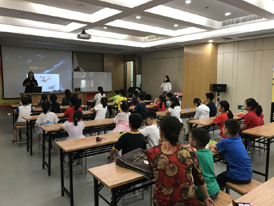 为了让少年儿童积极感知科技,增强儿童的科技意识,7月22日上午,奥体社区开展机器人编程科技活动。