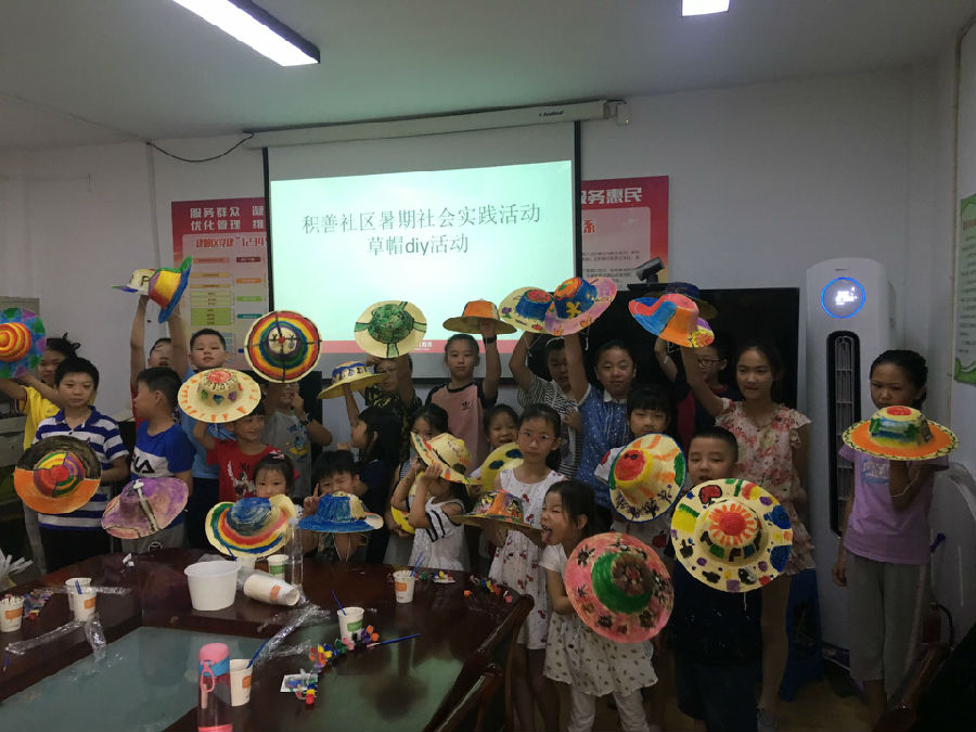 炎炎夏日,骄阳似火,草帽这一传统纳凉物品,因为美观实用等特点,成为人们生活中喜爱的物品。为了丰富辖区青少年儿童的业余生活,7月22日上午,积善社区开展草帽DIY涂鸦活动。