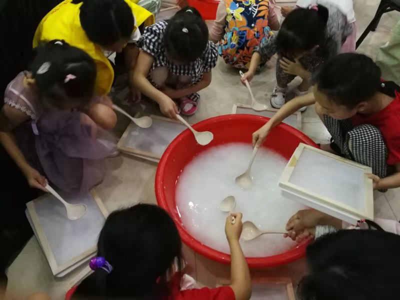 融侨社区通过手工制作,提高青少年动手能力,激发青少年兴趣和才能,培养青少创意思维。社区组织辖区青少年一起体验神奇“造纸术”,活动中,老师讲解了有关纸的发展过程,让大家对造纸过程有一个初步的认识和了解。接着,在老师带领下体验配纸浆、搅拌、平铺纸浆、装饰、自然晾干等环节,共同学习体验古法手工造纸。
