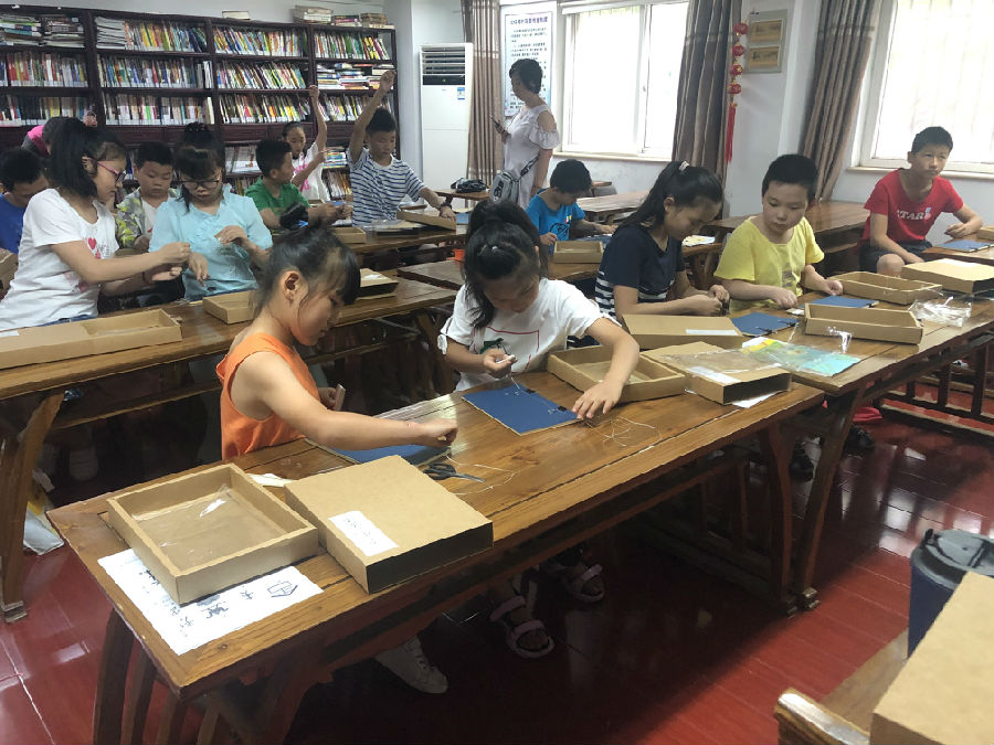 活动最后,为了让小志愿者增强动手能力,志愿者老师组织孩子们在自己动手体验古时候的作业本是如何装订的,大家纷纷动手在老师的指导下,完成了一本本古代时期的作业本。