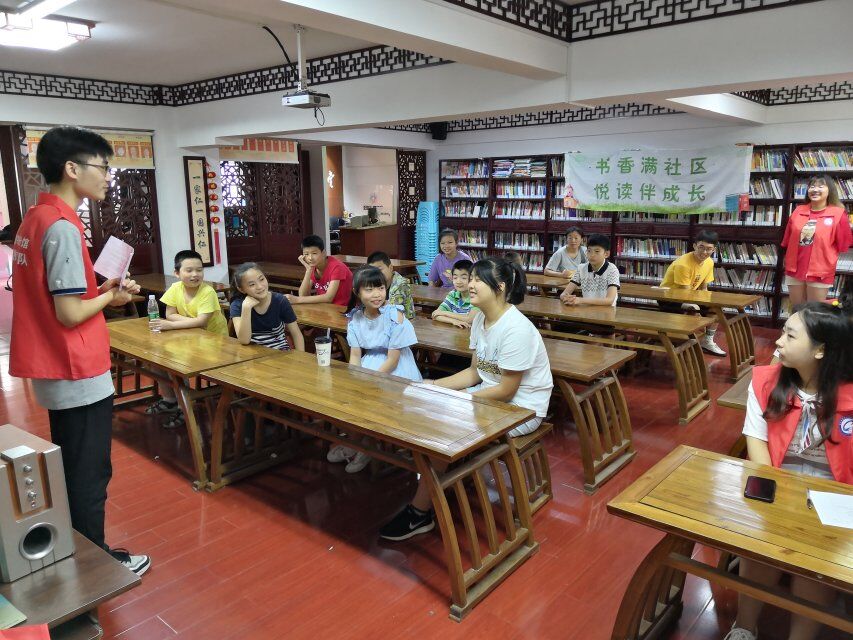 活动中,学生们在社区图书室阅读自己喜欢的书籍,在志愿者老师的指导下学习查字典,填写个人读书喜好登记表,交流读书心得,诵读经典等,现场气氛十分活跃,营造了浓厚的读书氛围。