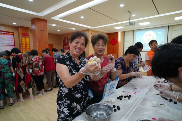 9月12日,南京建邺区莫愁湖街道明园社区活动室里,一片欢笑声,大家争相回答和中秋有关的问题赢取奖品。中秋佳节到来,明园社区联合朝阳公益、九如城居家养老服务中心,为社区居民组织了这次主题活动。大家一起互动抢答、动手做月饼,感受浓浓的节日气氛。