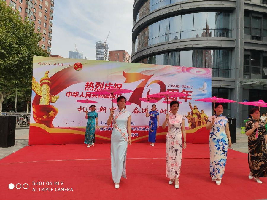 9月25日上午,中胜社区在味洲美邻广场举办中华人民共和国成立70周年暨“礼赞新中国,奋进新时代”文艺演出活动。活力激情的腰鼓舞中拉开了文艺演出活动序幕,而后快乐健身队的《莲花太极扇》、中胜社区太极拳队的《16式太极》向大家展示中华民族传统文化。优雅端庄的走秀《太湖美》、活力四射的舞蹈《点赞新时代》、为祖国献礼的《十送红军》、舞蹈《我和我的祖国》、二胡演奏等等轮番上阵,为我们带来了不一样的视听体验。