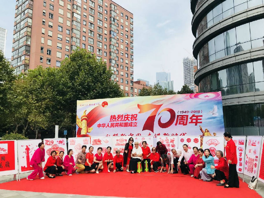 中胜社区剪纸班更是为了庆贺祖国70周年华诞,80天冒酷暑,战高温,从圆弧到月牙纹花瓣,从牡丹、桃子到蝴蝶、金鱼,一点点的学,一点点的剪,最终呈现出一幅幅生动的剪纸作品展览。从策划、组织、定稿、装裱等等凝聚了许多人的心血,许多都是年过半百的老人,大家怀揣着对祖国敬仰和祝福,不顾身体的病痛,家庭的琐事,广泛收集资料,自行创作,坚持动手剪纸,享受着忙碌与奉献的高贵,感知“烤着生命之火取暖”的无比幸福,这次剪纸展示承载着对祖国的祝福,对历史文化的传承,对美好生活的期许。