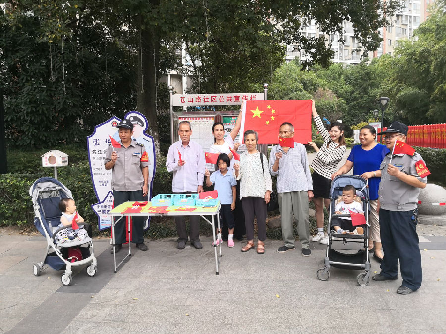 新中国成立70周年,在社区汤书记的号召下,“我和国旗合个影”的活动于2019年9月26日在苍山路辖区内的各个小区同步进行,在现场的小区居民,孩子们中营造了迎接国庆,祝福祖国的浓厚氛围!