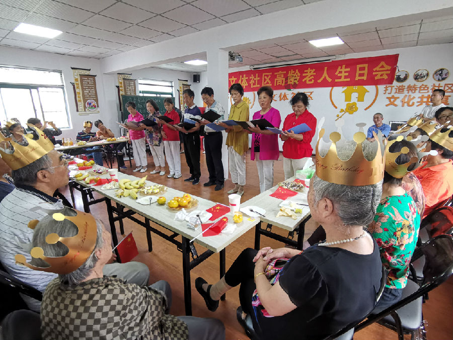 文体社区开展与祖国同庆生高龄老人生日会