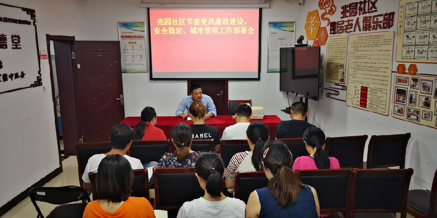 为加强作风纪律建设、维护社区安全稳定,国庆假日来临之际,9月30日下午,兆园社区召开节前党风廉政建设、安全稳定、城市管理工作部署会。