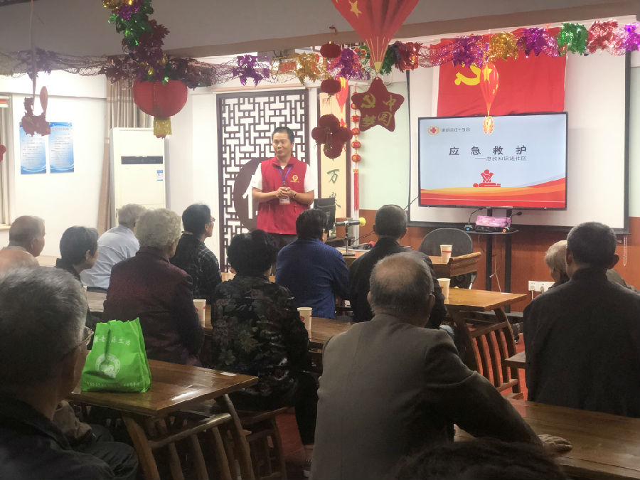 2019年10月18日下午,北圩路社区邀请到区红十字志愿者来到社区为大家开展应急救援知识讲座,参加此讲座共有40余人。