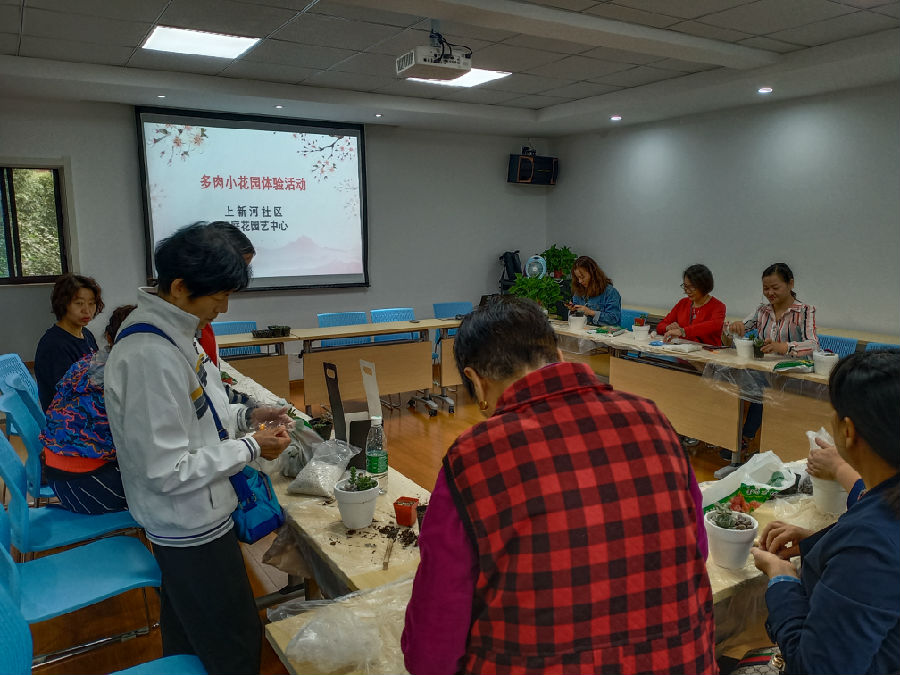 为丰富辖区内居民的文化娱乐生活,促进社区的和谐共融,关爱老人的精神生活。上新河社区联合植庭艺花艺公司在10月14日开展了多肉盆栽知识讲座及盆栽种植体验活动。