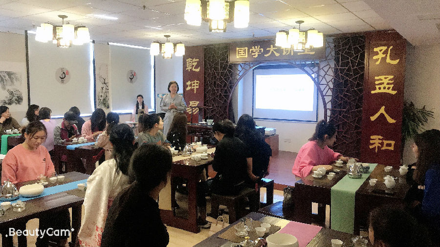 秋冬交替季节,喝什么茶养生可是有讲究的。高老师说,霜降节气是秋天最后一个节气,此时天气渐冷,露凝结为霜,民俗有谚“一年补透透,不如补霜降”。此时,饮茶以红茶为佳。茶艺老师心宁给大家介绍了泡茶九步奏:赏茶、洁具、投茶、洗茶、泡茶、分茶、奉茶、品茶、收具。在优雅的古琴声中,大家泡出一壶清香四溢的养生茶。纷纷表示,通过茶道这种方式了解中华传统文化非常好,浅显易懂。
