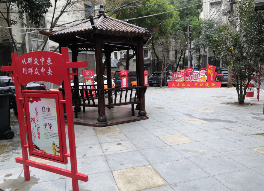 社区加强环境卫生的管理和保洁工作,严禁休闲广场上丢弃堆放任何垃圾杂物,协调解决车辆停放问题。整改出了休闲空间后,崭新整洁的水泥路面替换了原先残枯破烂的小竹林。新搭建的凉亭吸引来许多老人汇聚在这里打牌、下棋、聊天。广场上的社会主义核心价值观主题墙、红色文化宣传栏、不忘初心牢记使命醒目标语等红色元素,时刻让居民感受着党和政府的温暖,现在居民朋友的脸上每天都洋溢着幸福的表情。住在露园9栋的王奶奶从前一说起家门口,就唉声叹气、频频摇头。现如今广场焕然一新,王奶奶每天都要下楼转转,碰到网格员便拉着说到:“看看我们的小广场,我过去真是做梦也没想到能有这么大的变化啊!现在我们老年人,闲来无事就乐意下楼去广场上坐坐、晒晒太阳唠唠嗑,不像以前只能闷在家里,心情好了身体都感觉更健康了!”