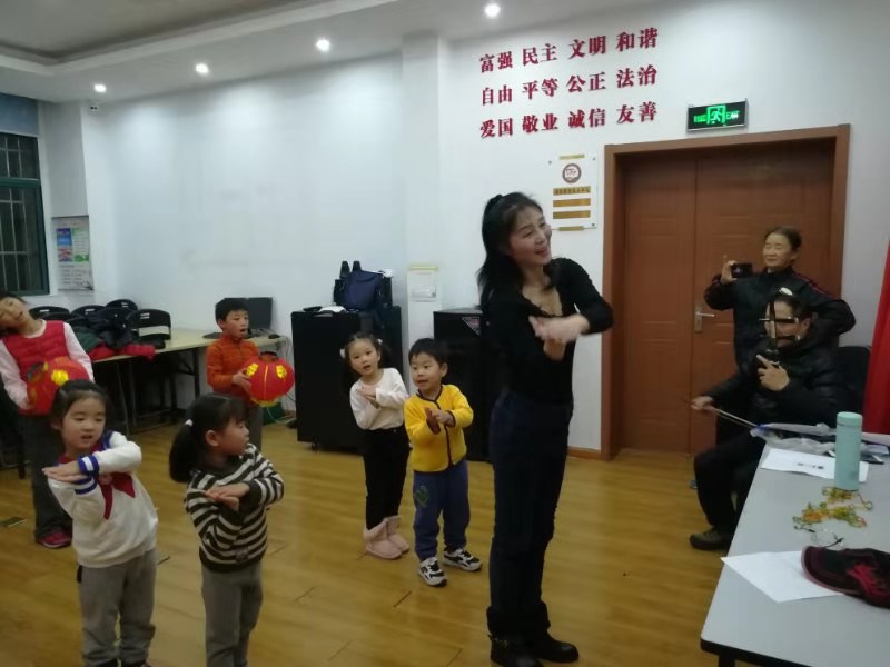 12月24日,金典社区白局培训班如期上课。培训班小学员在家长的陪同下,按时来到培训班现场,排练白局《快乐童谣》。老师教学很认真,耐心地一遍一遍反复示范,让每一个学员都能掌握动作要领。学员们学习兴趣特别高,学的好,学的快。学习《快乐童谣》第一段“灯笼”谣,又学了第二段“城门谣”。家长看着自己的孩子一次次地学习,快乐地成长,脸上挂满了满意的笑容。
