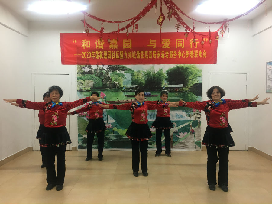 春节将至,为丰富社区居民文化生活,营造新春佳节喜庆温馨的氛围,2020年1月10日,莲花嘉园社区联合九如城莲花嘉园居家养老服务中心举办“和谐嘉园,与爱同行”——2020年新春联欢活动,通过长者精神风貌的展现,传递孝爱正能量。社区文体团队、党员及居民代表90余人到现场参加活动。