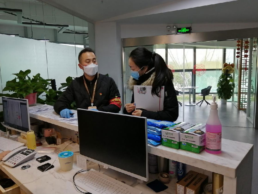 “我们即是守门员,又是店小二。我们第一要守好企业复工这道安全门,第二要做好为企业复工这道服务门”乐山路社区党委书记朱鹏介绍说,“我负责的是紫金文创园内的规模企业,他们企业规模大,复工人员多,往往跑个两家,一上午就过去了。虽然辛苦,但是看到企业正常复工运转,心里成就感也很大。”