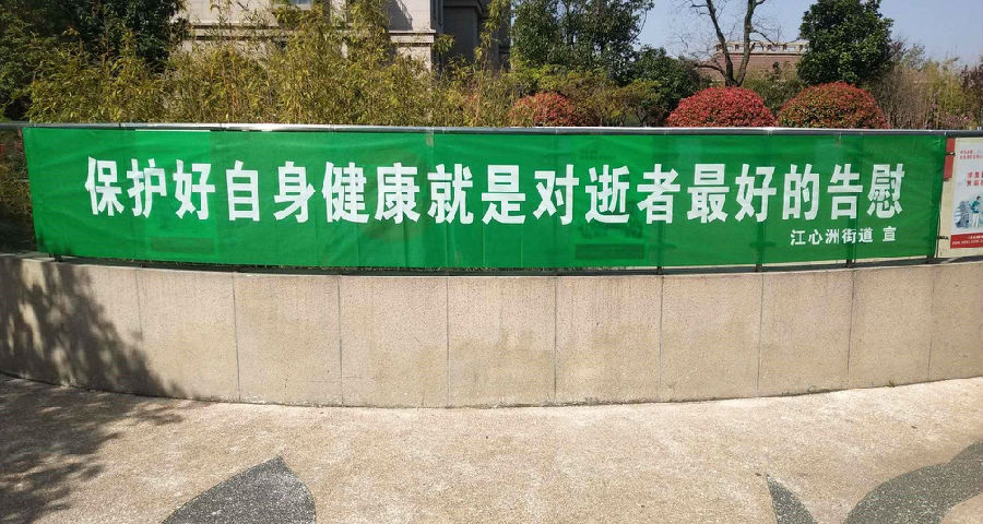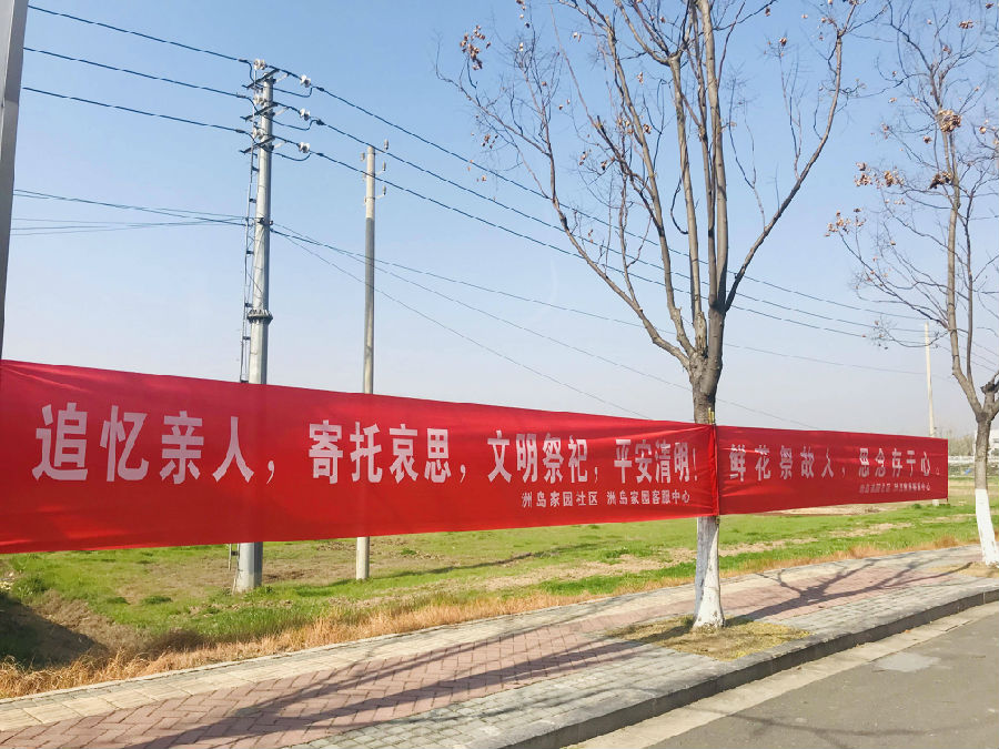 江心洲街道在清明节前夕,充分利用辖区电子滚动屏、电梯桥箱、悬挂横幅、宣传小喇叭、网格微信群等多种形式向广大居民广泛普及“安全、文明、绿色”的祭祀理念,号召居民群众逐步将实地实物祭祀转变为以家庭追思、网上祭奠、远程祭祀等安全文明的缅怀方式,寄托哀思,祭奠逝者,让文明、绿色、安全的祭祀理念深入人心。