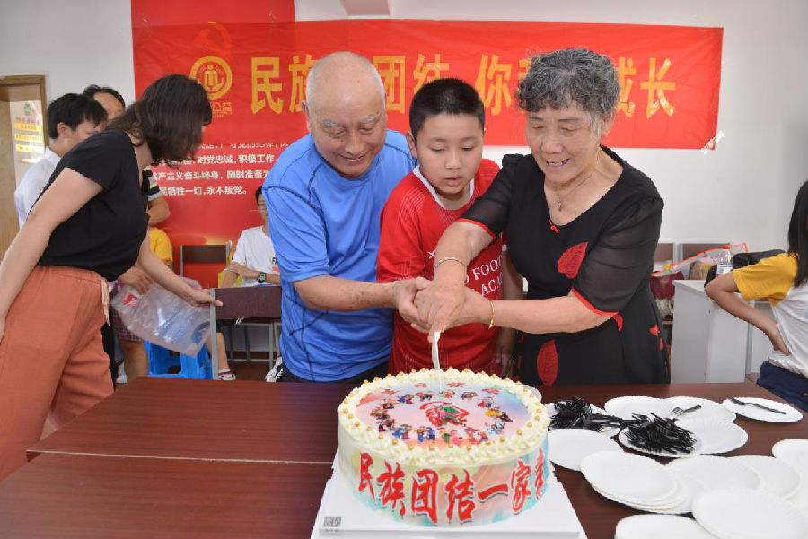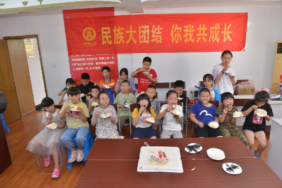 小朋友们点燃了写着“民族团结一家亲”别样的生日蛋糕,许心愿、吹蜡烛、切蛋糕,唱响了生日快乐歌,每个人脸上洋溢着会心的笑容。在悠扬温馨的音乐中,志愿者为小朋友们送上了别致的生日礼物,大家也相互送上了祝福与鼓励。
