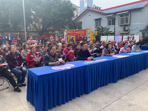 2020年11月6日下午,为了推广人口普查,提升群众参与普查、配合普查的积极性,沿河社区在沿河四村广场举行了"大国点名,没你不行"莫愁湖街道人口普查宣传进社区活动。